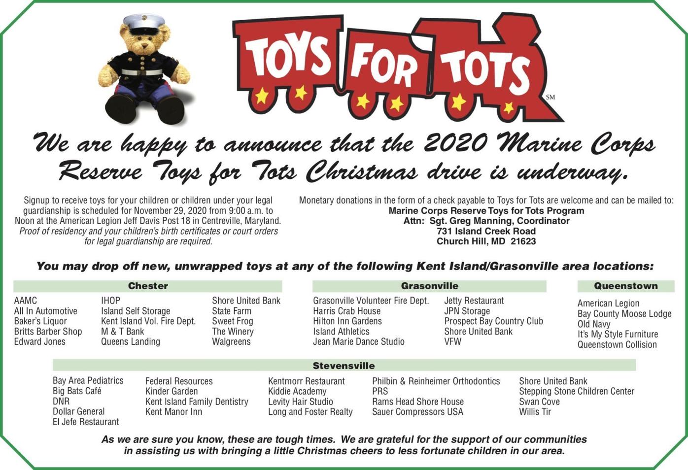 Toys For Tots Embarks On 19th Annual Toy Drive Community Myeasternshoremd Com